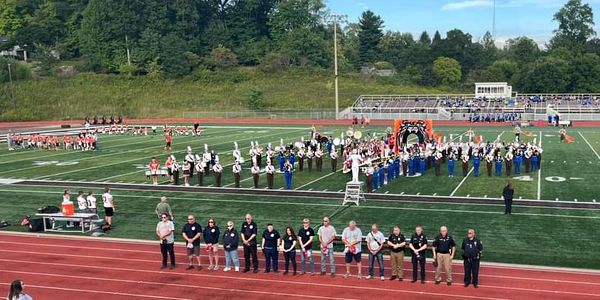 In a pregame ceremony, the East Palestine High School Band joined forces with the Lisbon David Anderson High School Band to pay tribute to First Responders, by inviting any in attendance to come to the track near the 50 yard line and be recognized. Those who were able represent all those who have gone before, and those who continue to serve today.