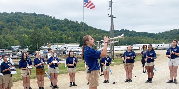 The Morgan High School Marching Band plays "Taps" at the Morgan County Fair on September 9
