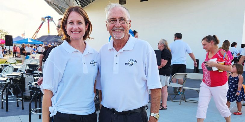 Retired band director and BDMB member Dean Davison and his daughter Lindy Rhodes performed with the Olathe Civic Band from Olathe, Kansas, on September 9, 2023 at the Olathe Old Settlers Day Festival. This community band with more than 100 members performs five to six concerts each year. The Civic Band performed a concert on a new outdoor performance stage in downtown Olathe during the community festival. The concert featured several patriotic selections honoring our country and service women and men. These included "An American Fanfare," "National Emblem," "American Riversongs," and "Armed Forces Salute."