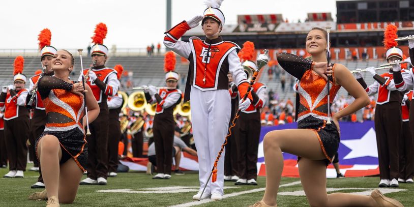 As part of the “Service Through Music” initiative of the Saluting America’s Band Directors and the Band Directors Marching Band, on September 9, 2023, The Bowling Green State University Falcon Marching Band honored first responders and military veterans with a large American Flag and American Eagle formation at their home football game.