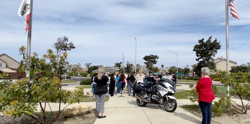 The Tommie Kunst Junior High School Band from Santa Maria, California performed on September 11, 2023 in honor of First Responders. The students memorized and played arrangements of Amazing Grace and the Star-Spangled Banner. They gathered at the flag pole, and played for a small audience of First Responders and local school board members. The performance was recorded and shared with other First Responders and members of the community as well.